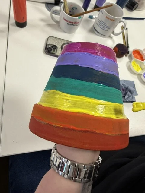Week 2 – On week 2 we came back together as a group and looked into our Positives from our weeks and then started the painting experience. This included painting a ceramic pot and planting seeds that we then had to look after at home so that they would grow and we could look after them.